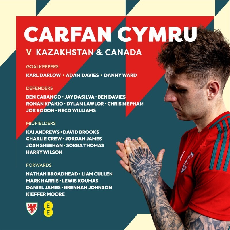 威尔士队大名单:布伦南领衔,本-戴维斯、内科-威廉姆在列